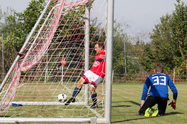 und durfte trotzdem dank Mithilfe des Gäste-Keepers das 1:0 für seine Farben bejubeln.